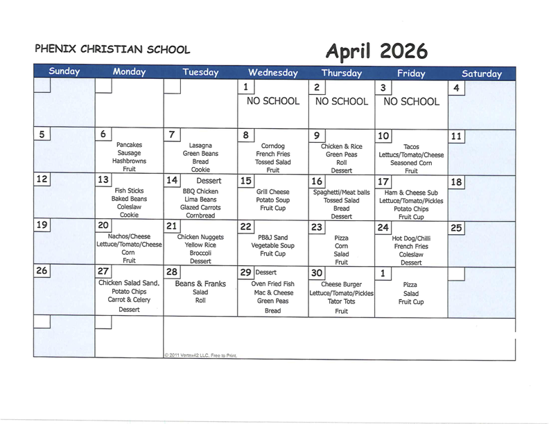 Phenix Christian School provides every student with a healthy meal and snack throughout the day. We help them from a young age to create healthy habits for life that will benefit them in their physical health and readiness to learn.